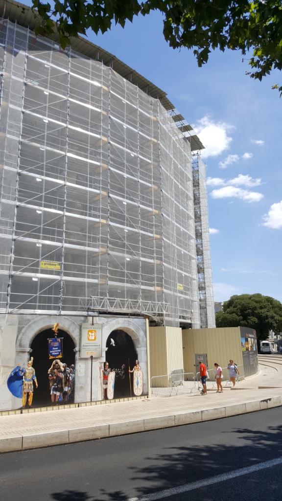 Après la restauration des travées 49 à 53 achevée en 2015, un nouveau chantier débute dans les arènes de Nîmes, deux fois millénaire. La nouveauté c’est que l’intervention est à la fois extérieure et intérieure et concerne aussi bien les façades que la couronne au sommet de l’édifice. Pour parvenir à restaurer le bâtiment sans ôter la patine du temps, de nouvelles techniques de nettoyage des pierres vont être utilisées, comme la nébulisation d’eau. L’aspect esthétique est loin d’être le seul objectif de ces travaux : car même si l’amphithéâtre romain est dans un état de conservation remarquable compte tenu de ses 2000 ans, il souffre d’un mal sournois qui le ronge de l’intérieur : le ruissellement des eaux de pluie. Les travaux relèvent donc de l’urgence sanitaire car attendre encore pourrait à terme compromettre la pérennité du monument.