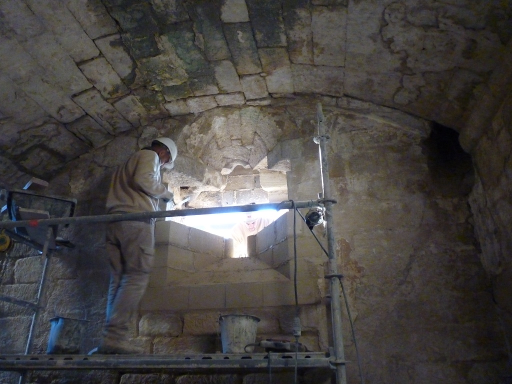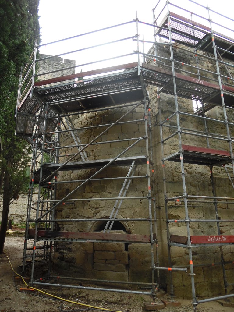 Contexte : La chapelle qui est propriété communale, se situe dans l’enceinte du château en partie propriété privée. Le site est aussi amené à recevoir du public pour les visites. Ces contraintes nous obligent à être particulièrement vigilants sur la tenue du chantier et la sécurité des passants.
