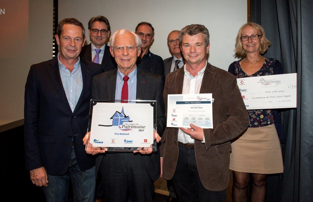 Cérémonie du 10 octobre 2017 Remise des Rubans du Patrimoine à la Commune de Pont Saint-Esprit pour la restauration du Lavoir (maçonnerie et taille de pierre) exécutée par Sele Nîmes.